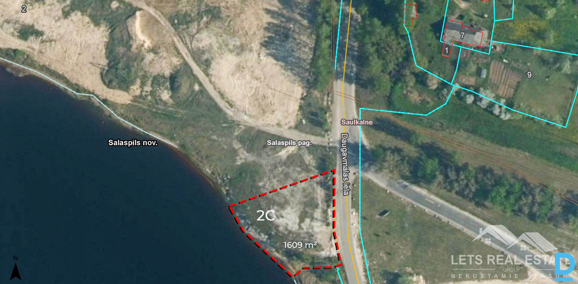 1609 m² apbūves zeme, Daugavmalas iela 2C, Saulkalne, Salaspils pagasts, Salaspils novads, Latvija.
