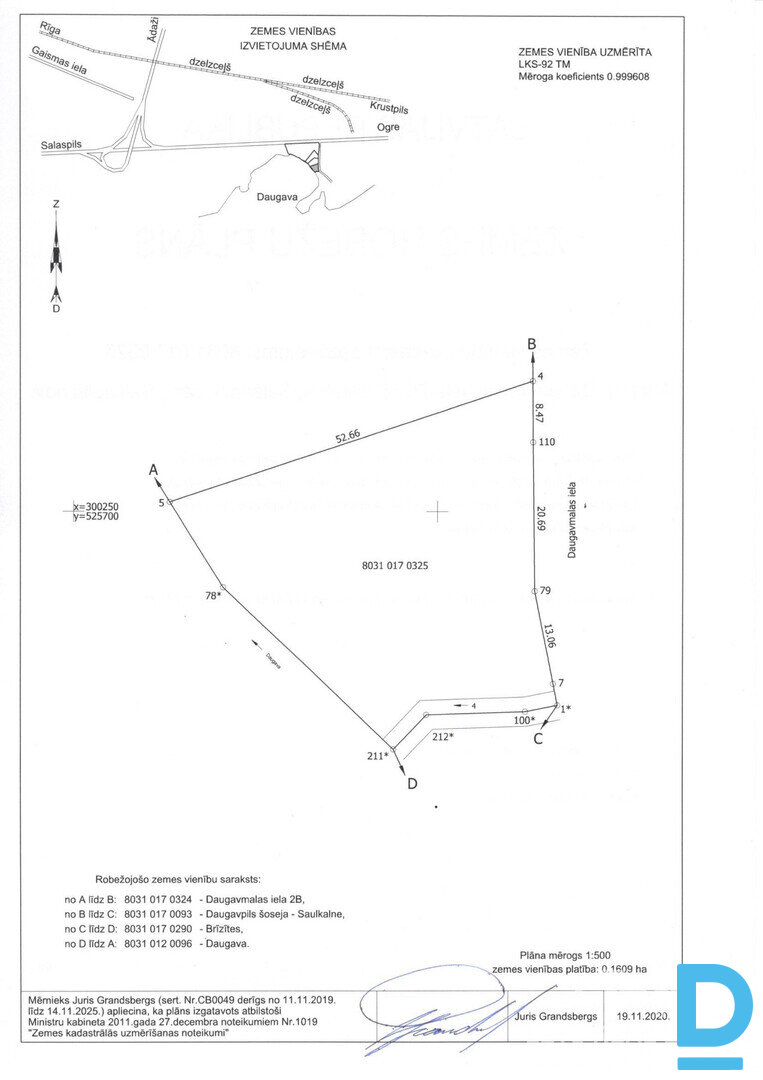 | Pārdodam apbūves zemes gabalu Daugavas krastā ar platību 1609 m². Ir elektrība, gāze. Zemes izmantošanas mērķis – mazstāvu dzīvojamā apbūve. Labs piebraucamais ceļš, blakus šoseja A6. Līdz Rīgai 20 km, Salaspilij 5 km. Cena 60 EUR/1 m². Īpašums bez parādiem un apgrūtinājumiem. Zemesgrāmata, vairāk informācijas telefoniski vai klātienē. | |
